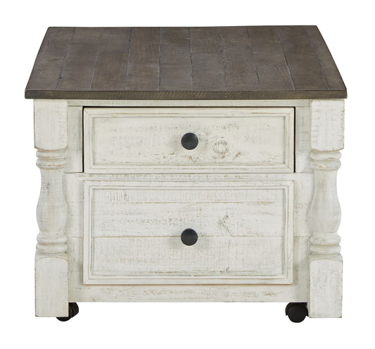 Havalance - Lift Top Cocktail Table with Storage Drawers - White / Gray