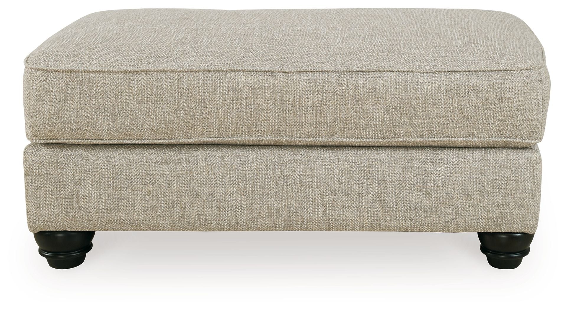 Blending comfort and style, this ottoman cradles your tired feet at the end of a long day. The distinctive look of heavily textured fabric in a light, neutral hue is enhanced by lighter flax peeking through. Whether paired with another piece or used on its own, this ottoman looks and feels right at home.