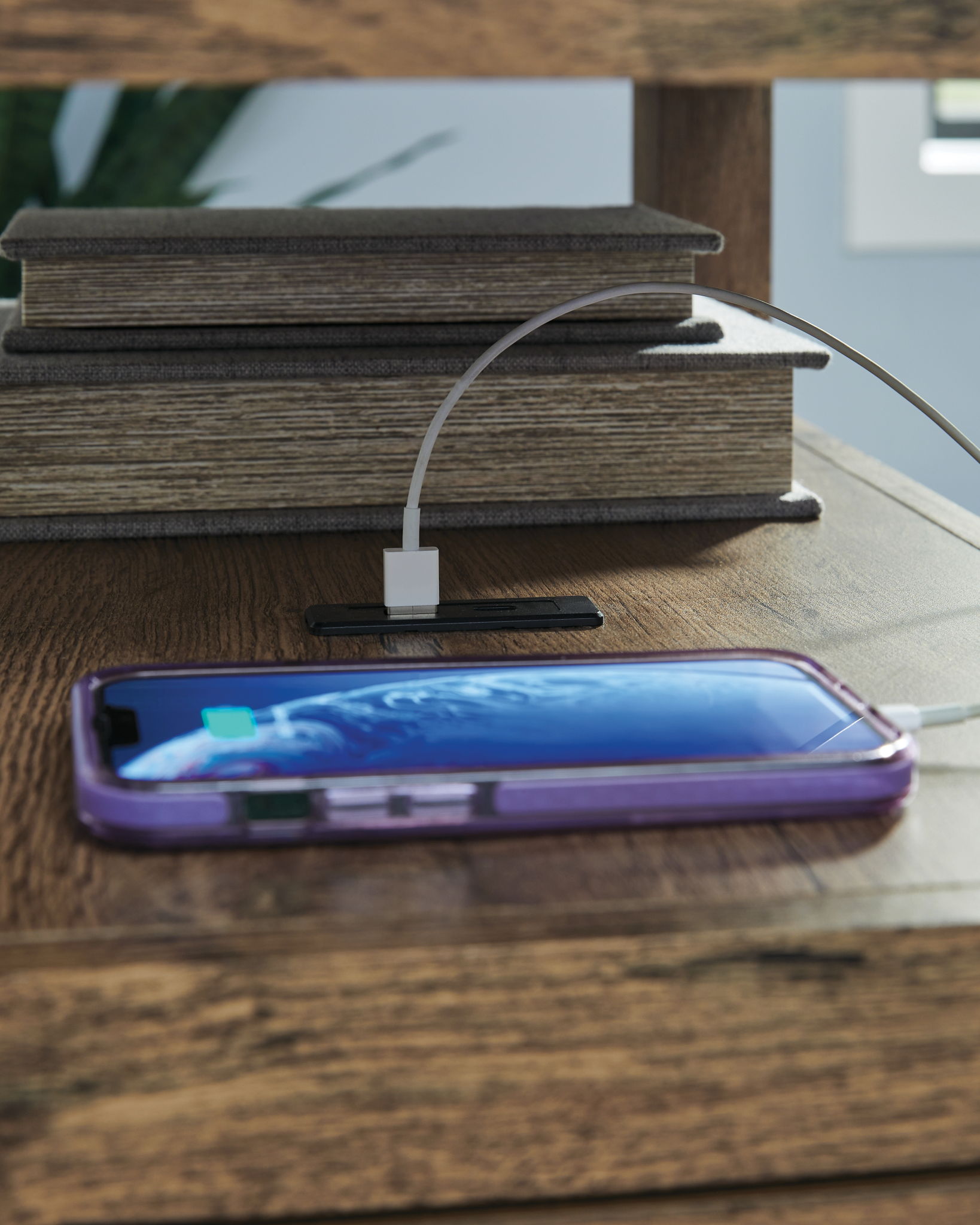 Embrace simply stylish sofa-side function with this chairside end table. Keep entertainment essentials like remotes, coasters and more close with the handy storage cabinet. Battery running low? Built-in USB ports keep easy charging at your fingertips. And with the table's rustic finish, it has the versatility to pair with aesthetics from casual to farmhouse.