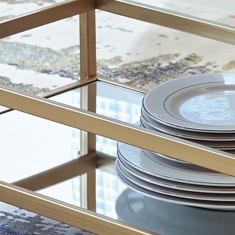 Whether used for serving up cocktails, showcasing succulents or creating dazzling displays, this bar cart does it with flair. The blend of clean lines, a chic black finish and sleek glass is a mastery in contemporary cool.