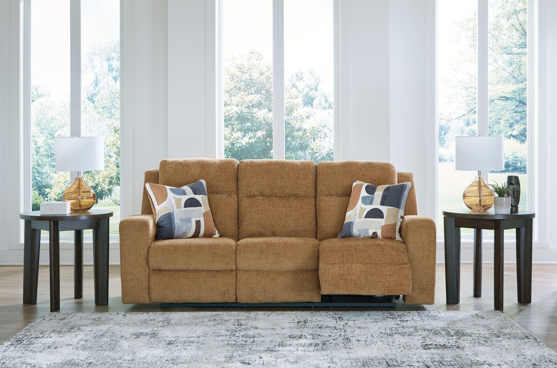 Indulgent comfort meets fashion-forward flair in this reclining sofa. Its luxuriously soft upholstery and captivating color show off your cozy yet smart style. Sleek track arms infuse a modern sensibility, while the striking accent pillows make this piece even more inviting. Simple pull tab reclining puts endless relaxation within easy reach, whether you're lounging solo or with friends.