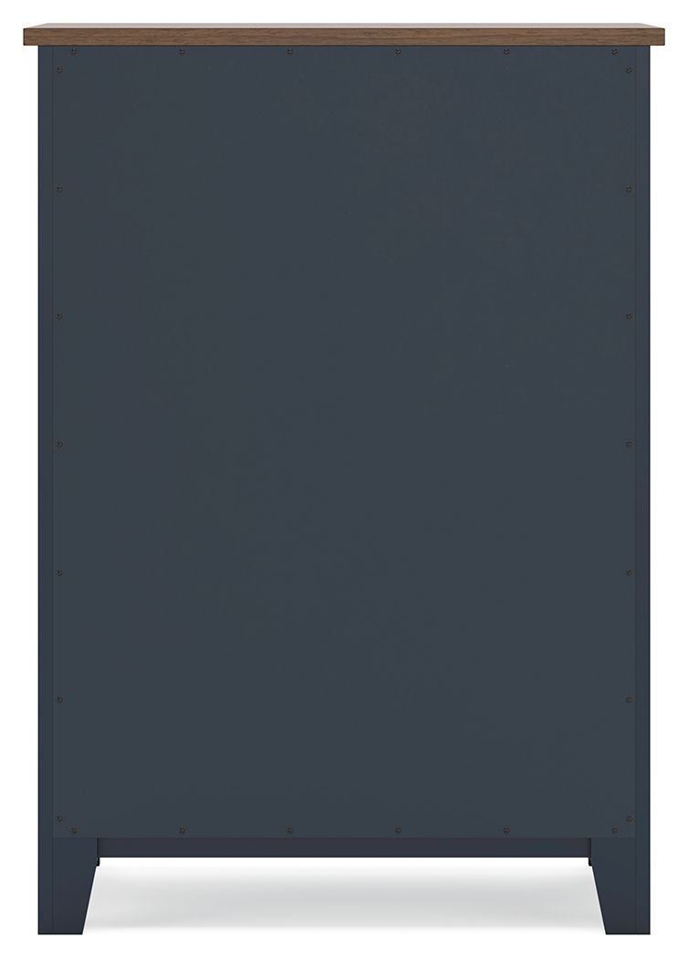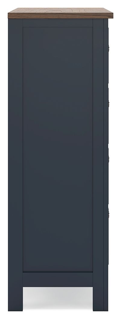 Add homespun charm to your restful retreat. A modern take on a timeless silhouette, this chest of drawers pairs a dark slate blue finish with a light brown top. Drawer fronts and legs in a classic Shaker style bring an air of beautiful simplicity to the bedroom. Whether it's part of a charmingly curated guest suite or a casually carefree kids room, this chest is a welcome addition.