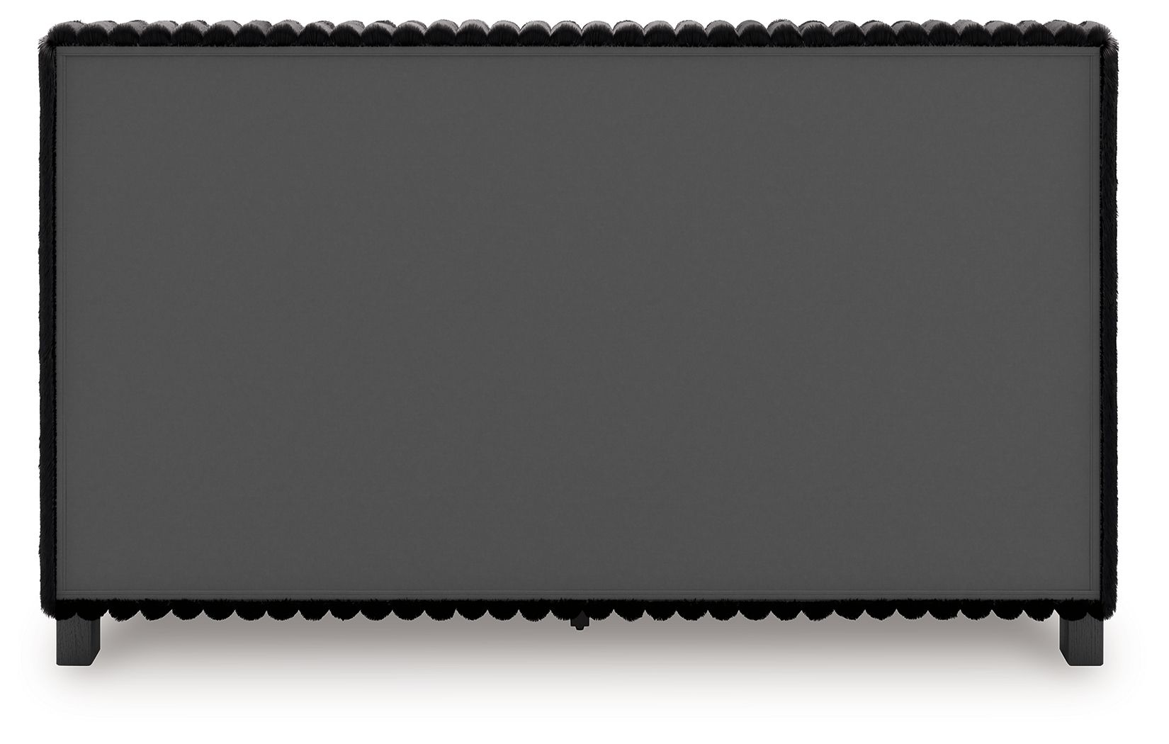 If casual and contemporary are your jam, youre gonna love this upholstered bed. Covered from head to toe in a luxuriously soft corded fabric, it has a chic flair that's sure to wake up your inner sanctums style. Were talkin relaxed refinement.